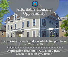 Mayor Joseph A. Curtatone in partnership with Buck Lee Real Estate Development, LLC are pleased to announce an income-restricted condo available for purchase through the City of Somerville’s Inclusionary Housing Program, located at 24 Rush St. in Somerville (24 Rush St. and 11 Brook St.). This 1BR condo