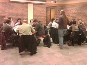 The atmosphere of the workshop resembled that of a classroom setting. Those in attendance were divided into two smaller groups. The groups sat at round tables and were given tasks to tackle and discuss. Most of the tasks entailed categorizing issues or events into which commissions they would fall under. The purpose of this was to raise interest in each given commission by discussing which commission would adhere to which issues and events.