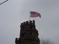 a commemorative flag is raised atop the Prospect Hill Tower. All