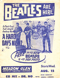 Were you one of the lucky ones who saw The Beatles’ movie A Hard Day’s Night at The Meadow Glen Drive-In in 1964?