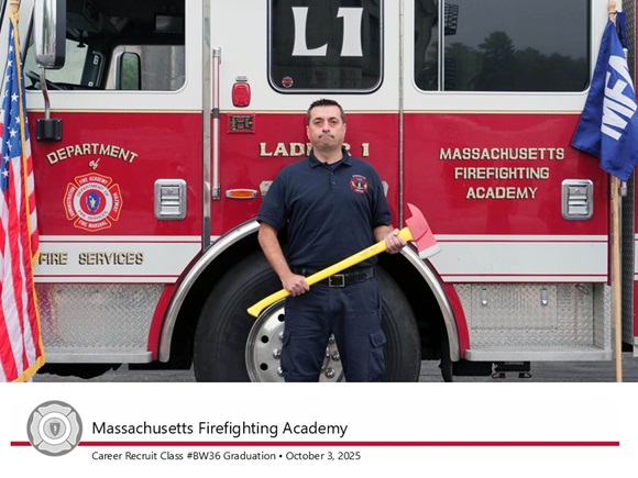 “Massachusetts Firefighting Academy instructors draw on decades of experience in the fire service to train new recruits,” said Massachusetts Firefighting Academy Director JP Seivane. “Through consistent classroom instruction and practical exercises, today’s graduates have developed the tools they’ll need to work seamlessly with veteran firefighters in their home departments and in neighboring communities as mutual aid.”