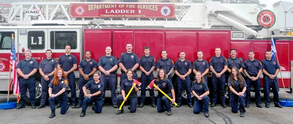 The graduating firefighters of Class #bw36 represent the fire departments of Avon, Brookline, Dighton, Hyannis, Kingston, Marshfield, Medford, Middleborough, Orleans, Sandwich, Sharon, Somerville, West Bridgewater, Wrentham, and Yarmouth.