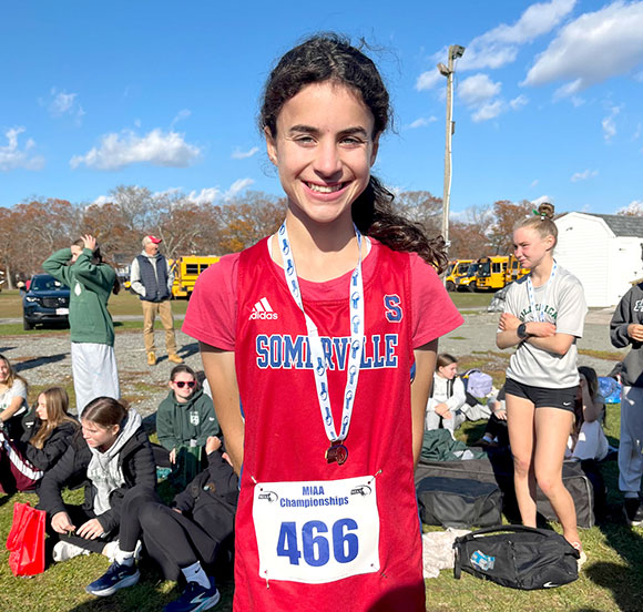 The Somerville Girls Team also won, as Freshman standout Aly Amin led from the start and won the race going away, with a time of 19:27 for the 3.1 mile course. Medford’s Emma Beardsley was second with a time of 20:05. The hotly contested battle between Somerville and Medford ended up tied at 40-40; with Somerville prevailing on the tiebreaker, with the 6th place runner bringing home the victory for the Highlanders! It was the closest Girls GBL Championship Meet in recent memory, as Somerville’s sixth (6) runner placed 15th, and Medford’s sixth (6) runner came in 18th. giving the victory to Somerville. Senior Co-Captain Greta O’Sullivan (5th) and Freshman Jennifer Gordon (7th) also earned All-GBL designation.