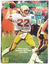 Forty-two years after the Coconut Grove fire, Boston College won the 1984 “Miracle in Miami” game on November 23 against the number-one-ranked University of Miami. It was won on a 48-yard Doug Flutie pass, in cutting wind and pouring rain with zero time on the clock. Somerville’s Peter Casparriello, Boston College’s team captain and left tight end, had the best view in the house. As part of the play, he watched the “Flood Tip, Hail Mary Pass” complete itself in the crowded right end zone.