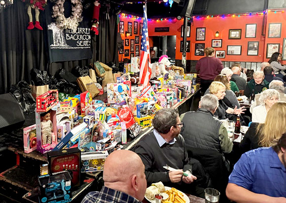 On Thursday, December 11, Somerville Kiwanis Club members were joined by our good friends from the Somerville Rotary Club and Somerville Lions Club for our annual Toys For Tots luncheon meeting at the Burren Restaurant in Davis Square. Two members of the Marine Corps joined us for this special tri-club meeting.
