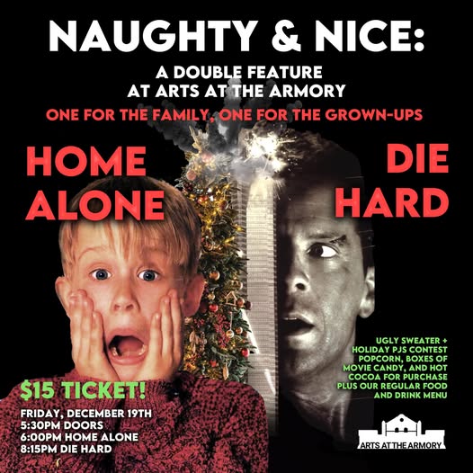For tickets and more information visit: Naughty & Nice: Holiday Movie Night at Arts at the Armory – The Center for the Arts at the Armory
