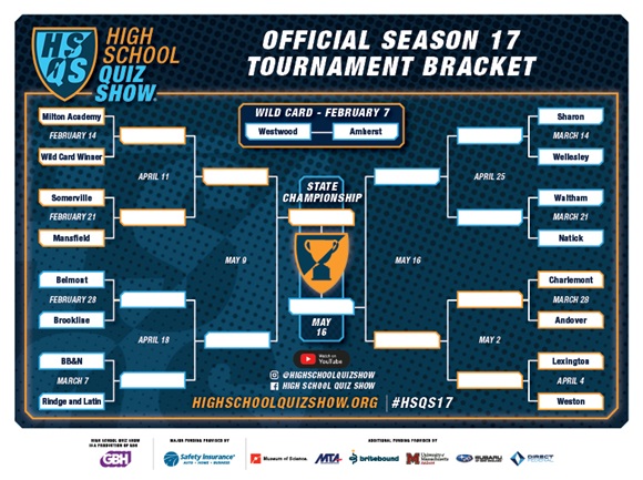 High schools from across the Commonwealth go head to head in Season 17 of GBH’s academic tournament, High School Quiz Show starting this week! You can find the television broadcast premiere dates and schedule in the bracket above.