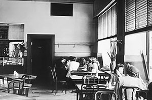 If you wanted water, you served yourself. You could also walk in off the street and have a free glass of water. On one occasion, during World War II, two men showed up at The Waldorf and walked out with two large, freestanding fans (there was no air conditioning). The men and fans were never seen again! Pastry was under a glass counter. You ordered your meal and took it to a table. There were no waiters or waitresses, at least not until later years. When the waitresses finally started working at The Waldorf, I can still see them wearing their hairnets. There is restaurant staff today, male and female, in some of the eateries and bars in the square that should be wearing hairnets.