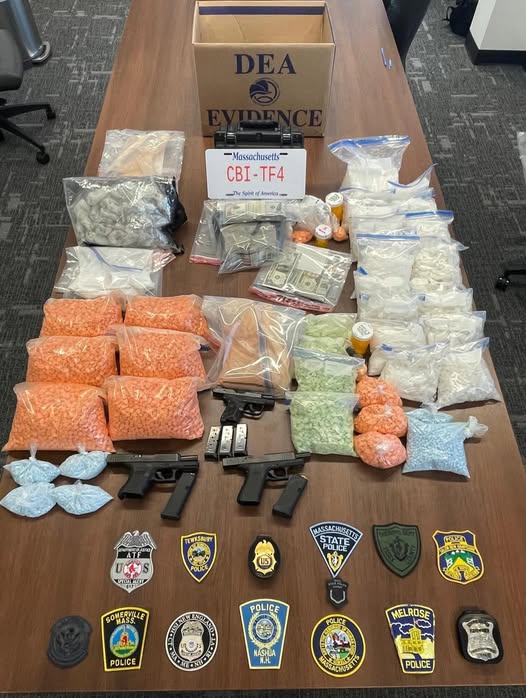 Two recent enforcement operations at locations in Somerville and Lowell resulted in the seizure of tens of thousands of counterfeit pills containing fentanyl and meth, 30 lbs of crystal meth, and 3 handguns. Thank you to our partners @massstatepolice @tewksburypd @salemnhpolice @nashuapolice @methuenpolice @lowellmapolice @somervillepolice @melrosepolice @icegov @atfhq @hsigov @essexcountysheriffsoffice