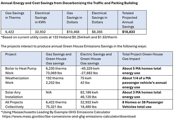 As the charts below detail, the three projects are expected to collectively produce more than $18,000 per year in energy cost savings. Total reductions in fossil fuel use are also projected to equal the total energy use of eight Massachusetts homes or the gas consumption of 38 passenger vehicles.