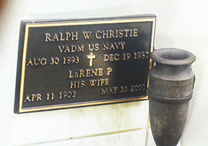 During his career, Vice Admiral Ralph Waldo Christie received many honors and awards. Among them were the Navy’s Distinguished Service Medal, the Navy’s Legion of Merit, and the Army’s Silver Star for gallantry in action while serving as Commander of Submarines in the Seventh Fleet. The Silver Star medal was presented to him by General Douglas MacArthur.