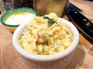 This recipe has great texture from the celery along with creaminess from the mayonnaise and yolks, a hint of sweetness from the shallots, a hint of sourness from the pickle and an underlying hint of heat from the Sriracha. Serve between two slices of your favorite bread with lettuce and tomato, an open sandwich with a sprinkle of either sweet or smoked paprika, or on a cracker with a parsley garnish. Serves 3-4 sandwiches.