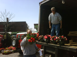By William Tauro Ricky DiGiovanni owner of Ricky's Flower Market in Union Square unloads a truck load of spring flower arrangements and hanging plants that just arrived. |