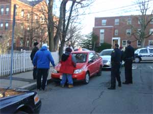 By William Tauro Somerville Police Detectives and Uniformed Officers closed in on and arrested three alleged drug dealers Friday afternoon. The suspects were observed walking down Beacon Street carrying a laptop and other items by undercover officers, which arose suspicions. The undercover officers followed the suspects, thinking they might be linked to recent break-ins in the area. The suspects turned onto Hawkins Street and were observed by the undercover officers conducting a hand-to-hand drug transaction, which led to the suspects arrest. |