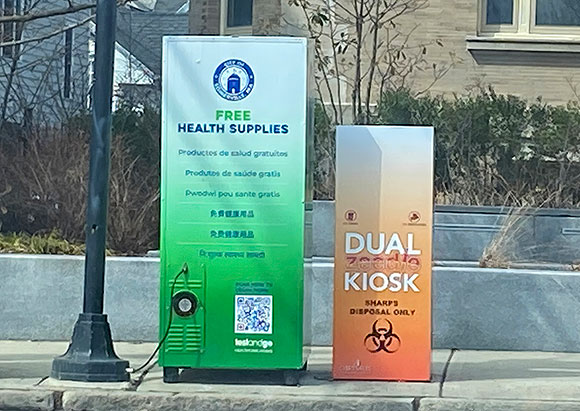 As a result of advocacy from At-Large Councilor Kristen Strezo, these new kiosks provide 24/7 access to various health and safety products at no cost.