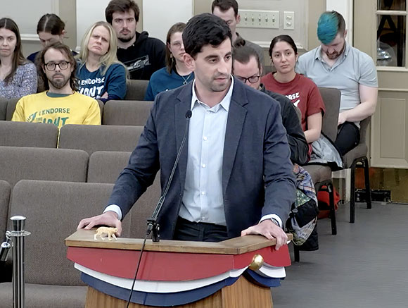 Local team at city hall on day of endorsement