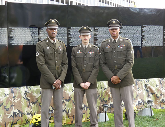 The event, enjoying unusually warm weather for the season, commemorated all of the soldiers who have sacrificed their lives from all American wars, but especially those associated with the Civil War who are noted on the Monument at the historic Milk Row Cemetery (1804). A poppy wreath was also laid for the Unknown British soldier buried on site from the American Revolution by a representative from the British consulate, Tom Nickalls. British Redcoat Eric Niehaus, and many additional members of the Ancient and Honorable Artillery Company were also in attendance.