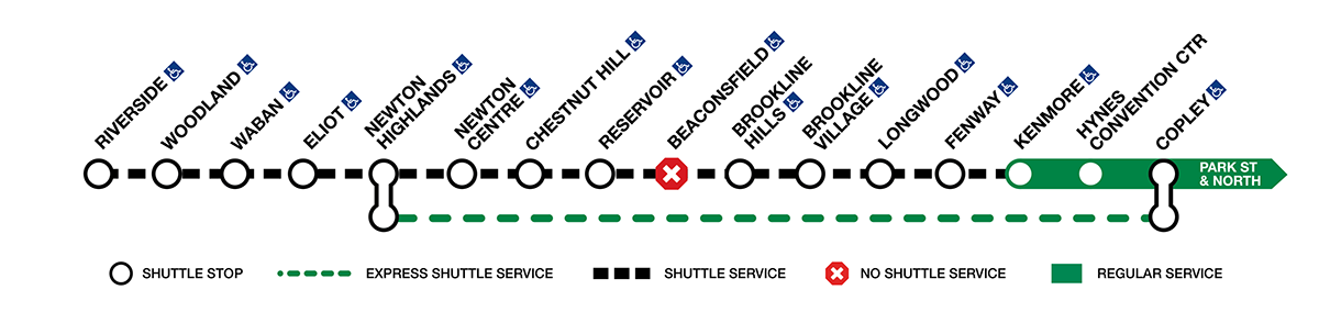 The MBTA will continue work to install Green Line Train Protection System (GLTPS) infrastructure. When complete, GLTPS will add an extra level of safety as we install vehicle and wayside equipment that provides alerts, controls speeds, and prevents train-on-train collisions.